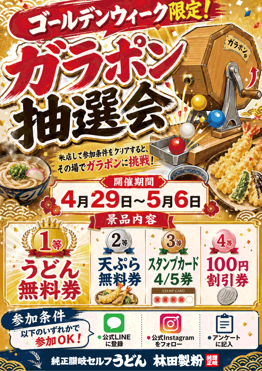ようこそ、「純正讃岐セルフうどん林田製粉」へ。